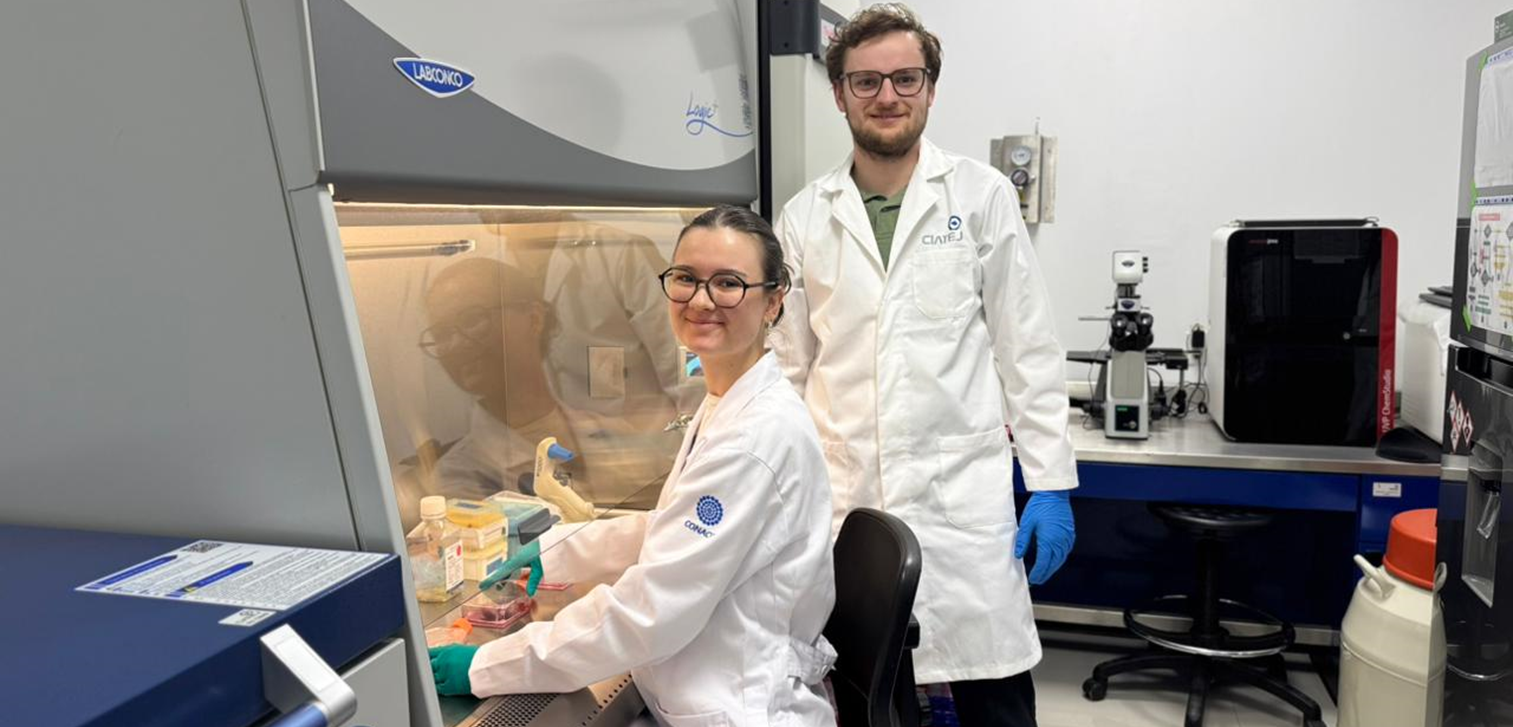 Durante su estancia, Gwenn y Ugo trabajan en el laboratorio de Nutrigenómica de la subsede Zapopan, donde desarrollan estudios en cultivo celular enfocados en la evaluación del potencial antiobesidad, antiinflamatorio y la biodisponibilidad de péptidos bioactivos derivados de proteínas de frijol, chícharo y grillo.
