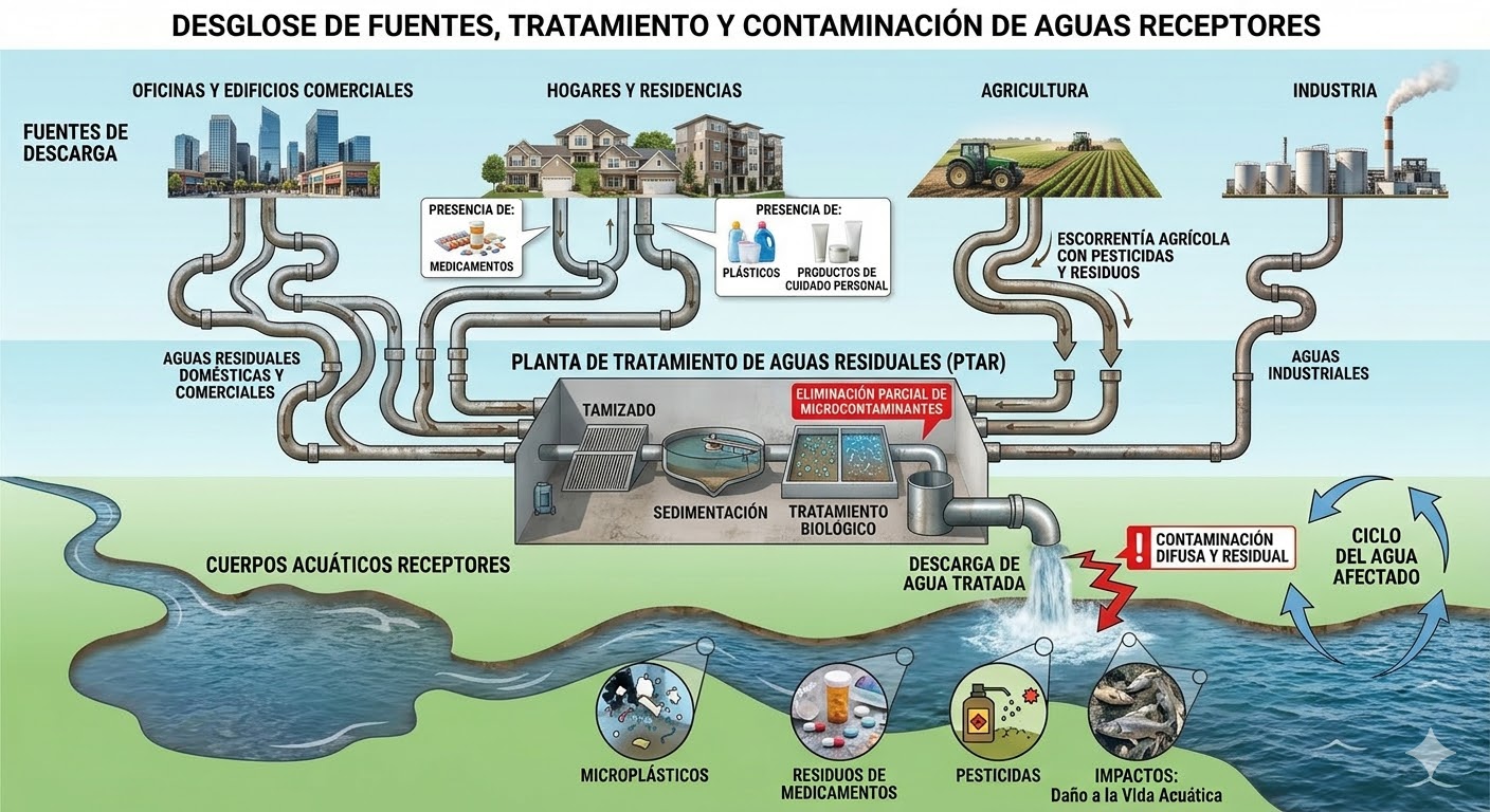 Bajo este término se agrupa un verdadero “cóctel químico” derivado de nuestra vida diaria: residuos de medicamentos, antibióticos, hormonas, pesticidas, productos de cuidado personal y compuestos industriales que utilizamos constantemente.